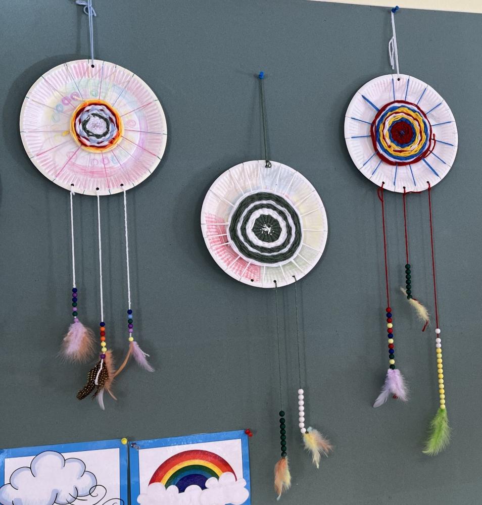 Wir haben uns unsere Traumfänger selber gebastelt.